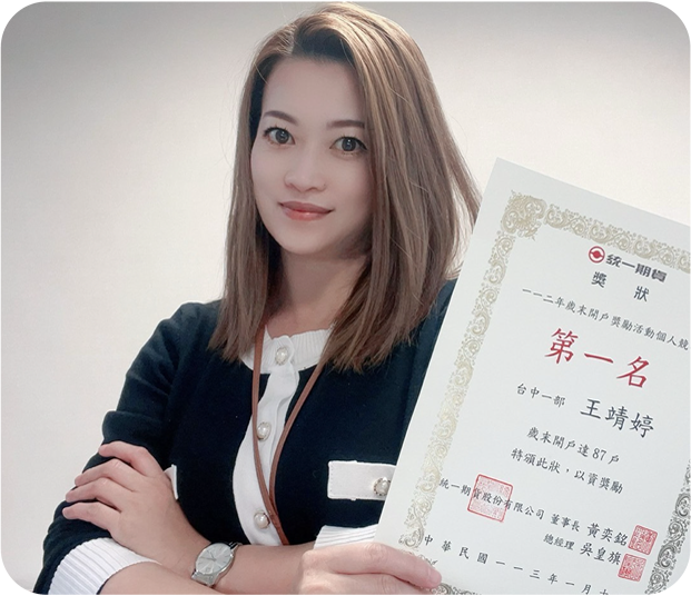 擁有10年新聞媒體、品牌行銷與公關經歷,跨界金融專業併進,連續獲得年度績優營業員獎,累積抽樣客戶滿意度回饋最高評比。