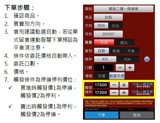 統一期貨手機APP智慧單功能(雲端停損觸價、OCO、移停)