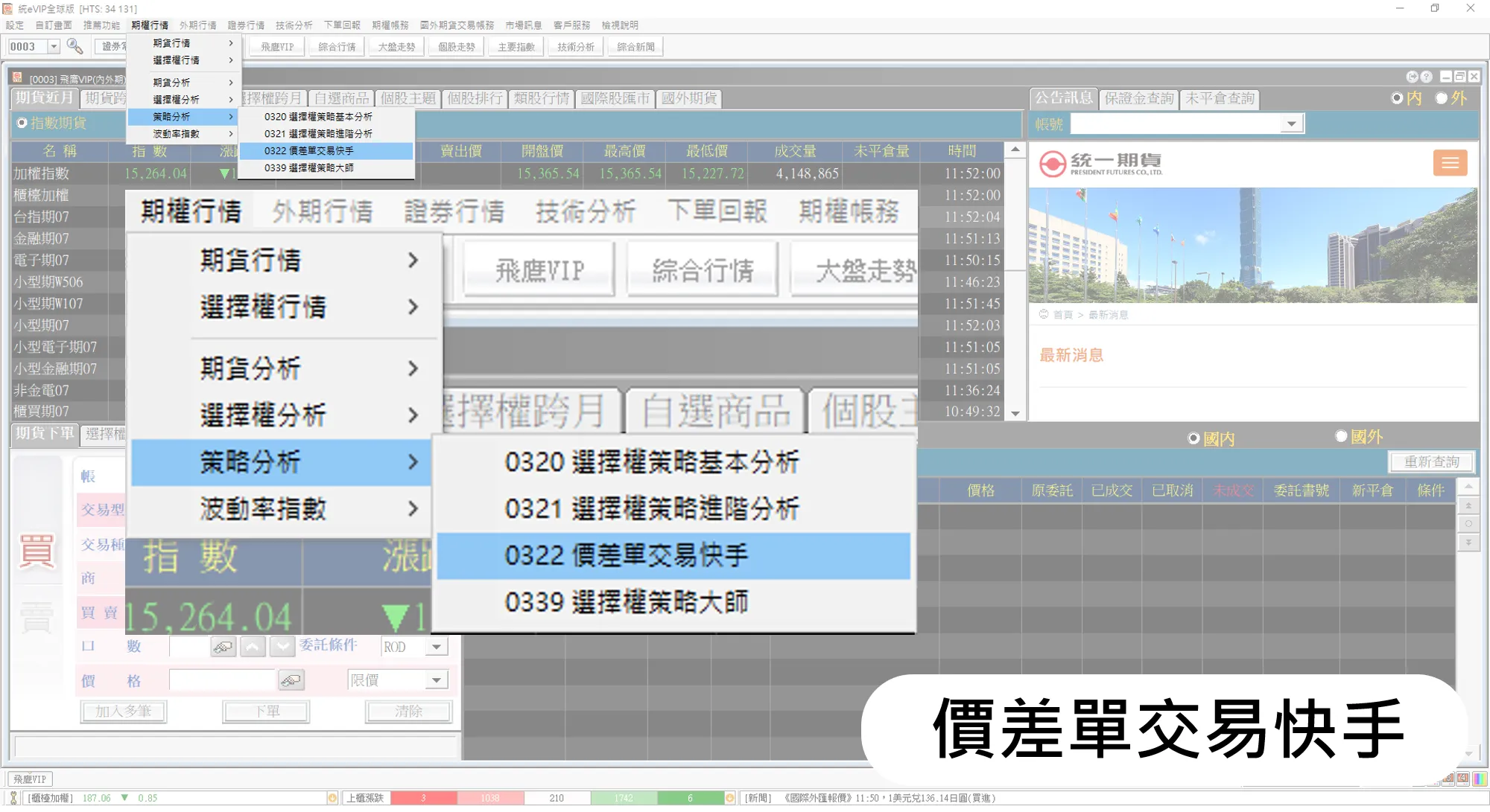統一期貨VIP全球版 ─ 電腦下單【0322】價差單交易快手