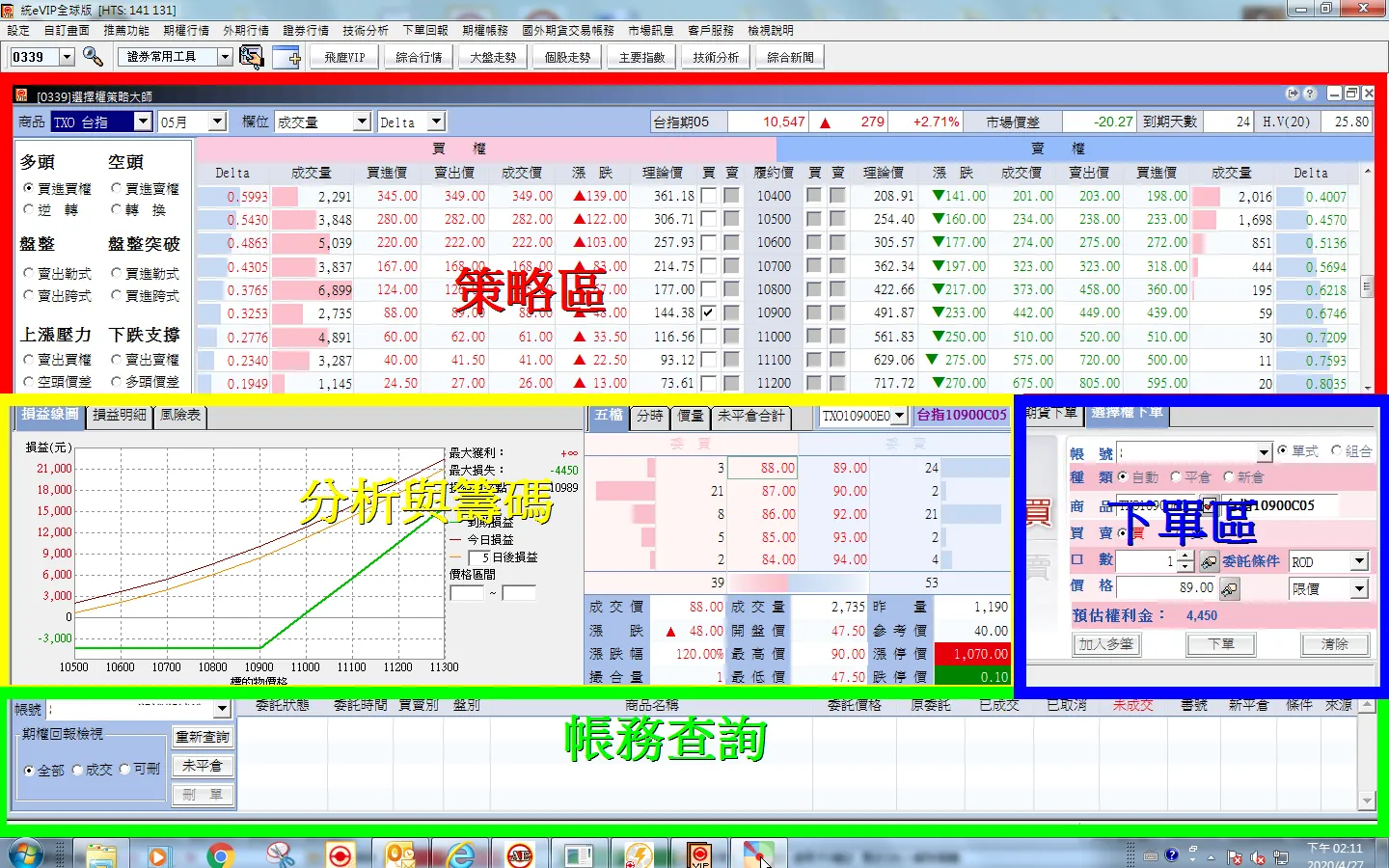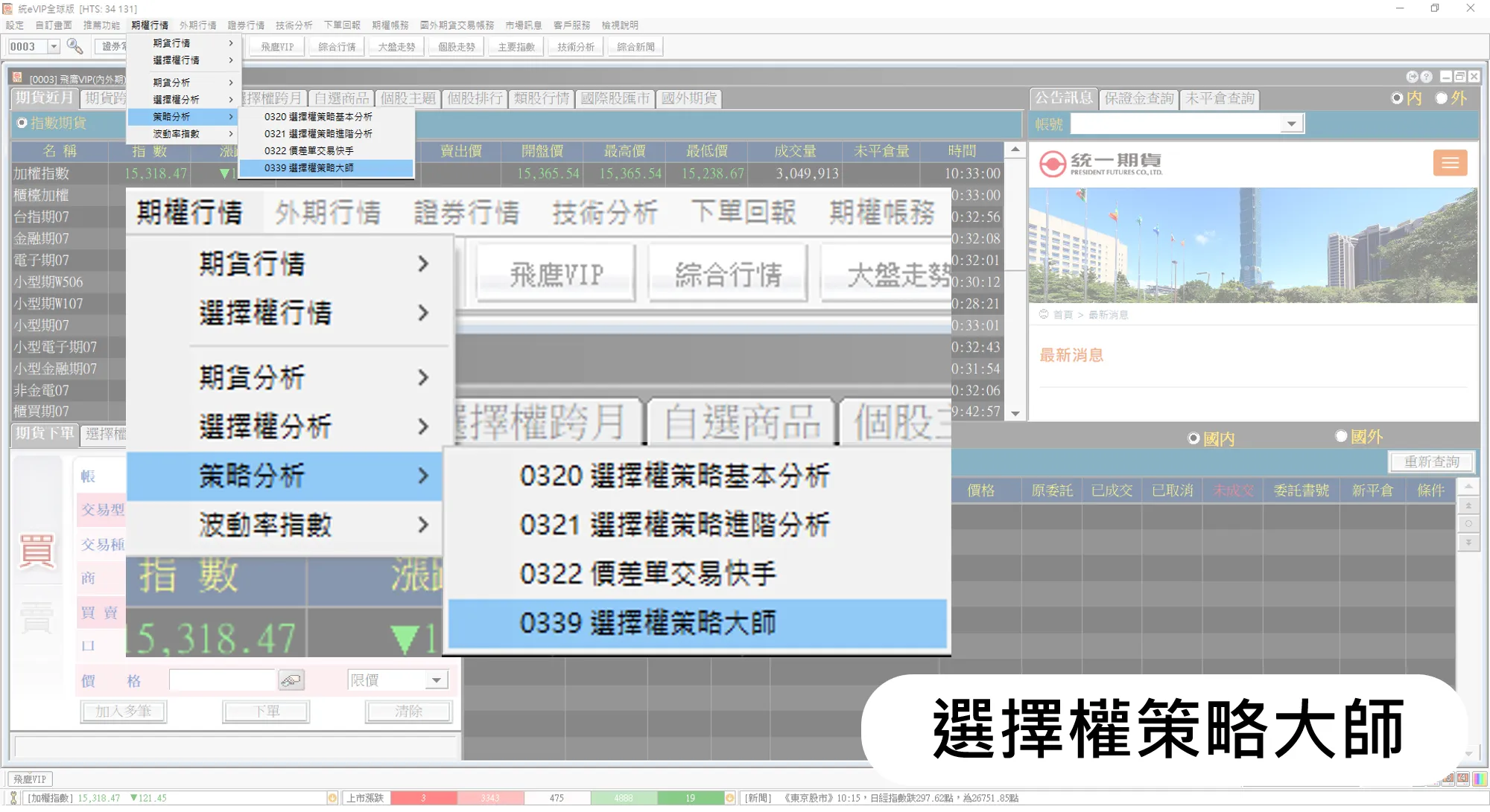 統一期貨VIP全球版 ─ 電腦下單【0339】選擇權策略大師