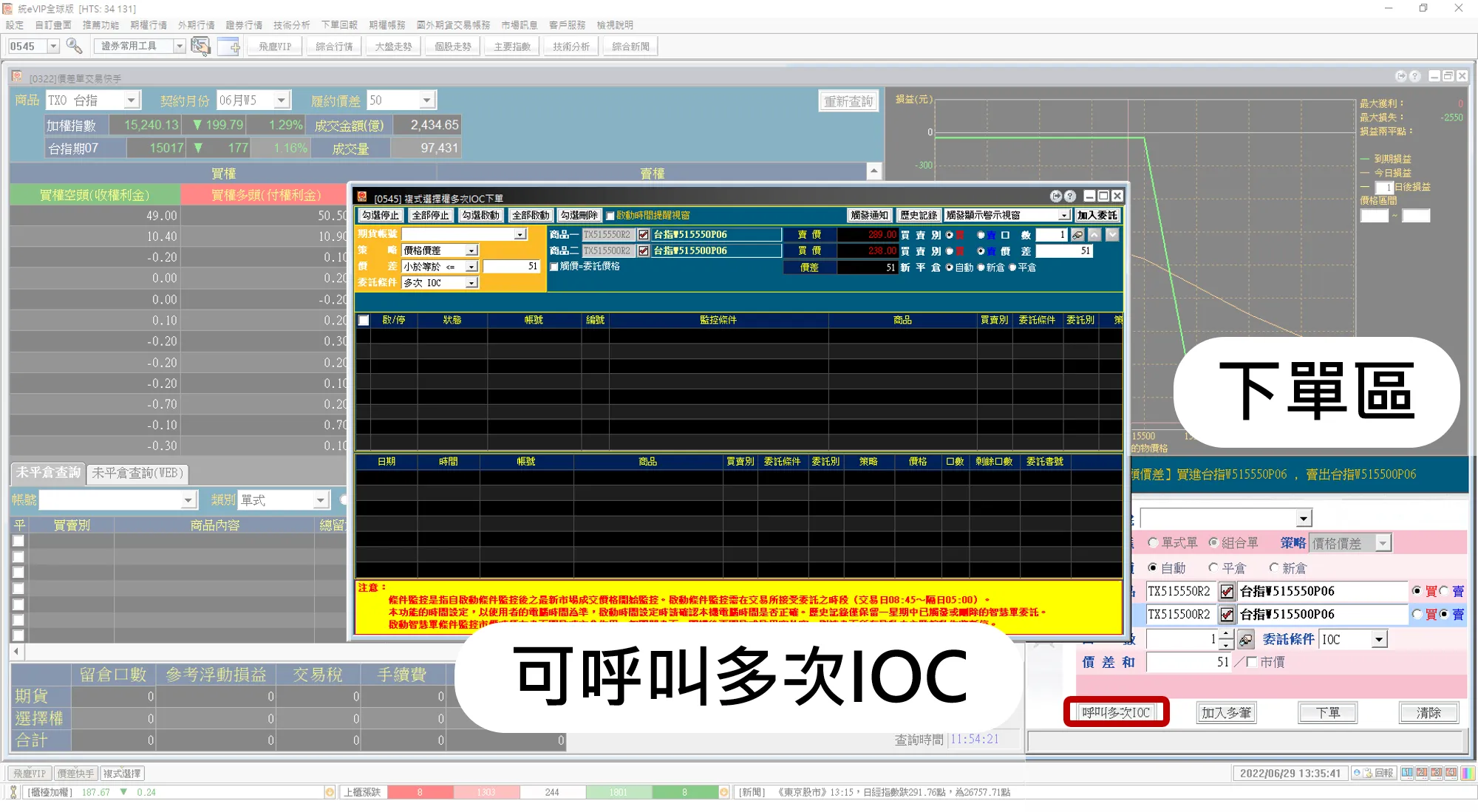 可以呼叫多次IOC,達到快速下價差單與洗價功能,就不用一直掛價非常方便。