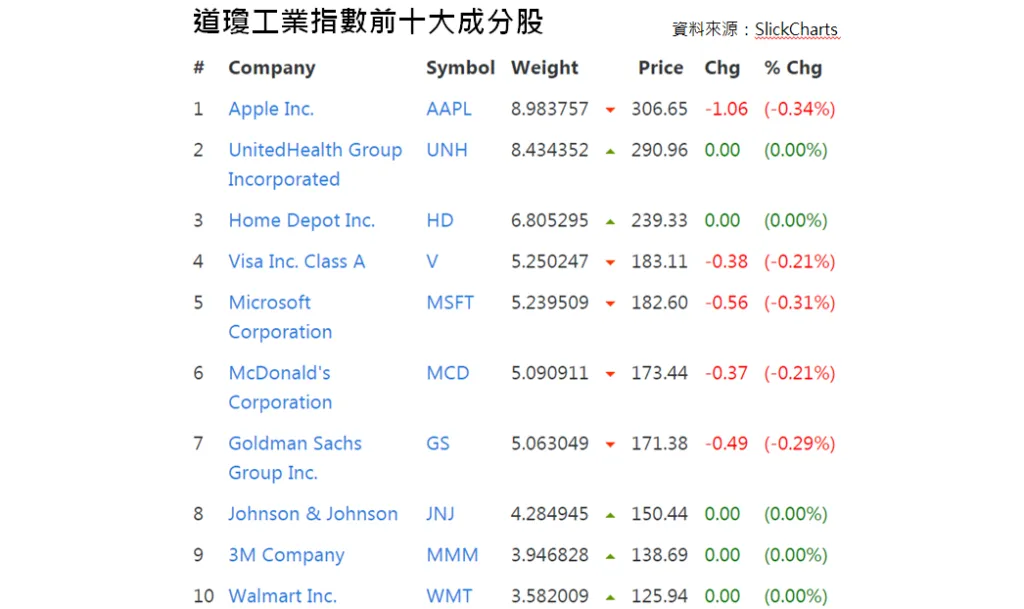 道瓊工業指數的組成:迪士尼、麥當勞等知名公司