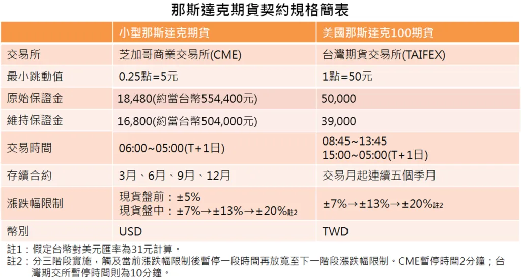 小型那斯達克期貨契約規格與注意事項