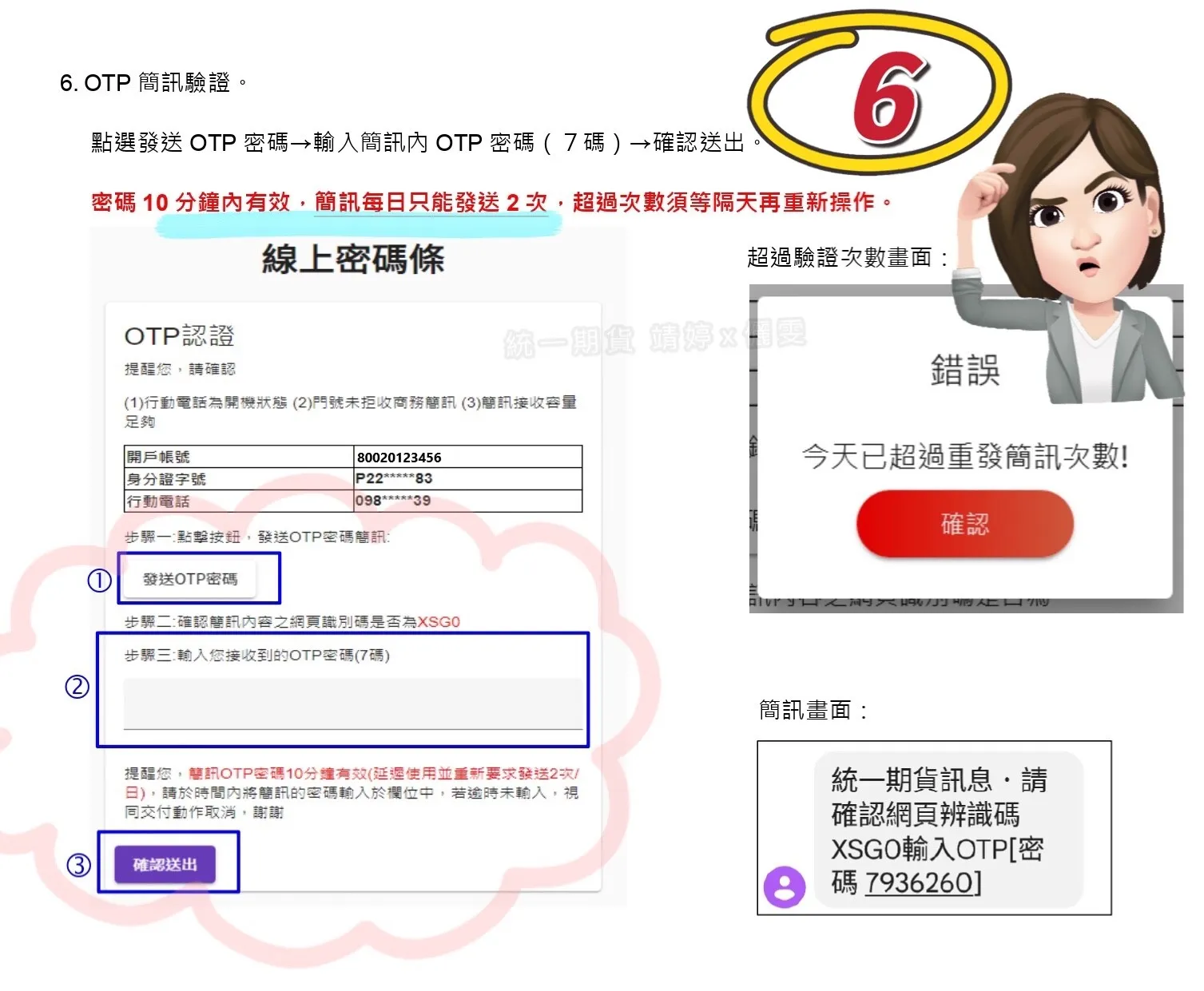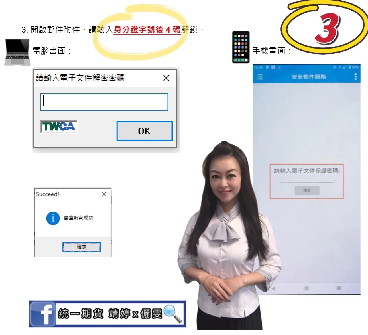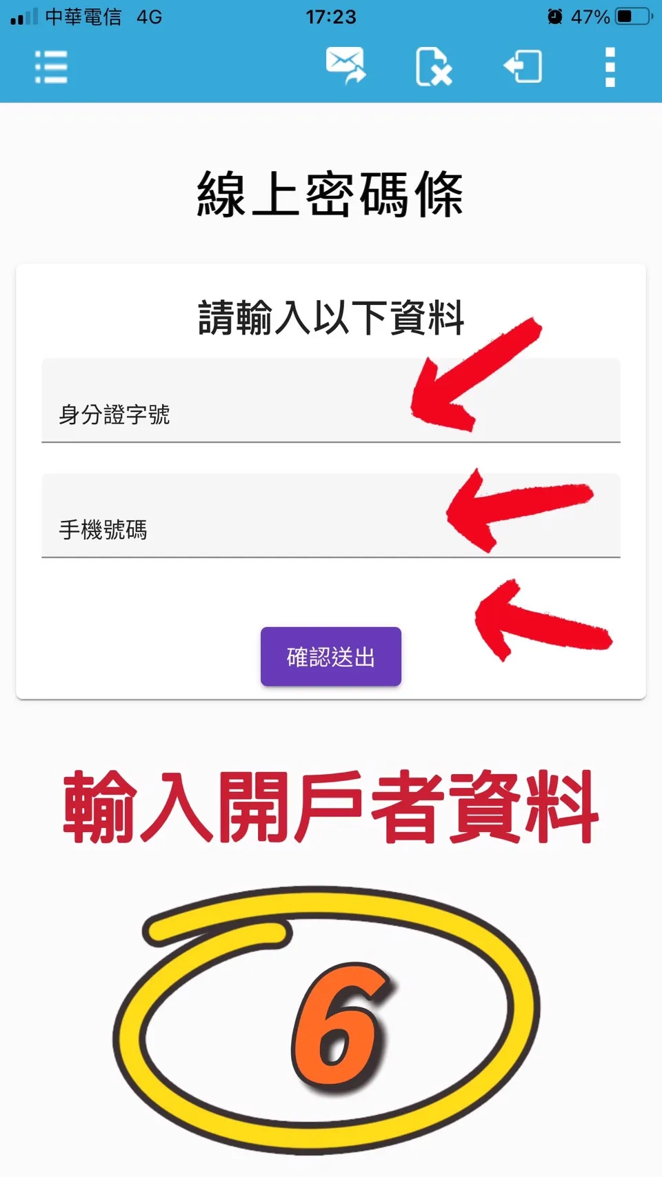 線上開戶的朋友完成開戶作業,當您收到密碼條信件時,該怎麼做才能開啟密碼條呢?請依照以下六步驟,解開密碼條的三道密碼:
