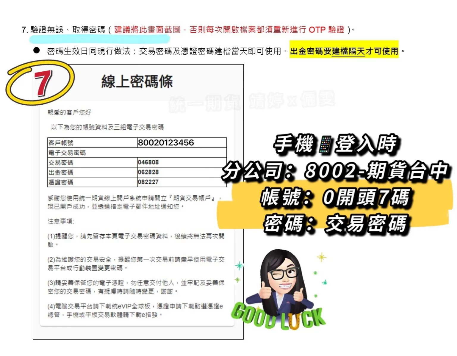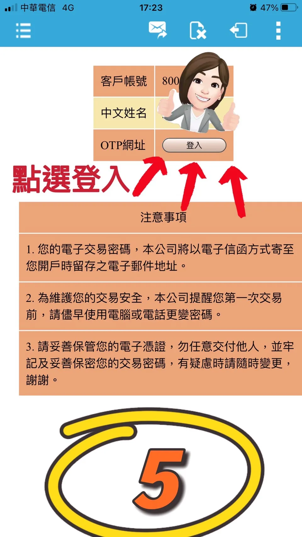 使用電腦的朋友,密碼條會寄發到您開戶時留下的e-mail,請先到信箱收信(垃圾信箱也幫我查詢看看喔!) 現在就請按照以下圖文一步步執行: