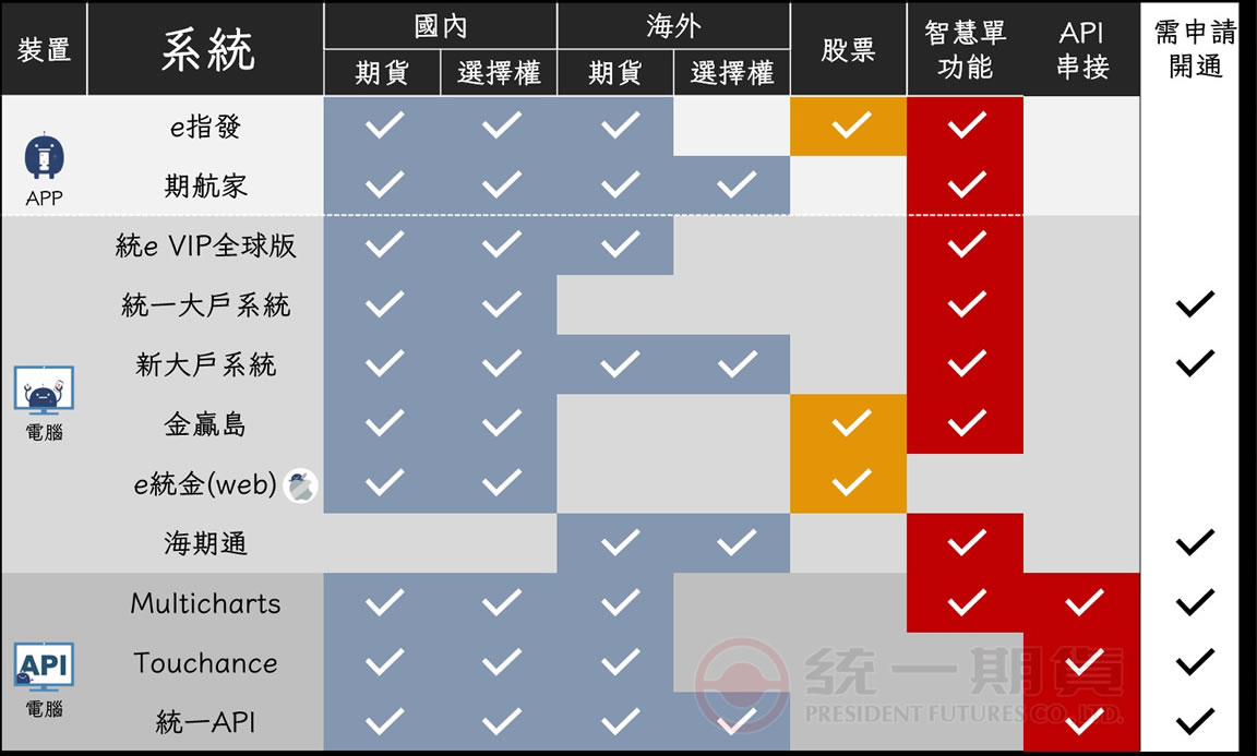 同時交易海期與國內期權: 統eVIP全球版 、 統一e指發 、 期航家